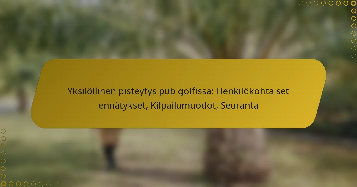 Yksilöllinen pisteytys pub-golfissa on tärkeä osa, joka korostaa henkilökohtaisia saavutuksia ja edistää kilpailua pelaajien keskuudessa. Seuraamalla henkilökohtaisia ennätyksiä, kuten alhaisimpia pisteitä ja nopeimpia aikoja, osallistujat voivat asettaa parannustavoitteita. Lisäksi erilaiset kilpailumuodot ja pisteiden seuranta -menetelmät parantavat kokonaiskokemusta, jolloin pelaajat voivat osallistua ainutlaatuisiin haasteisiin, jotka on räätälöity heidän mieltymystensä mukaan.