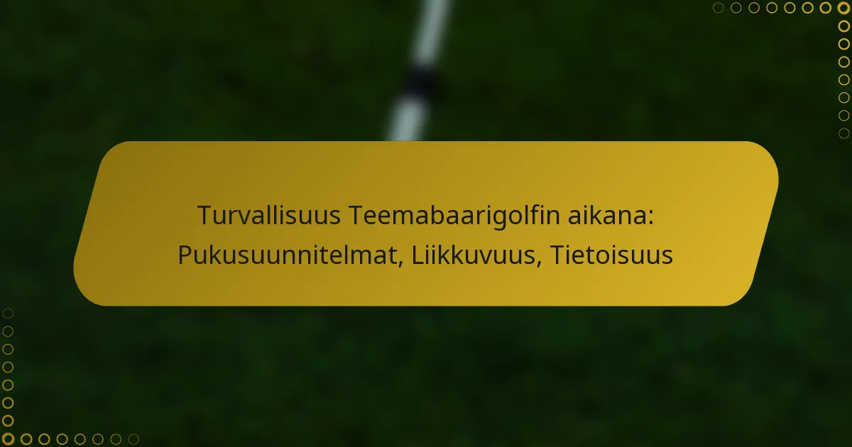 Teemallisessa pub-golfissa osallistuminen vaatii kostyymien valitsemista, jotka tasapainottavat hauskuuden ja käytännöllisyyden, jotta mukavuus ja turvallisuus säilyvät. Liikkuvuuden varmistaminen mukavalla pukeutumisella mahdollistaa nautinnollisemman kokemuksen, kun taas tietoisuusstrategiat, kuten ryhmässä pysyminen ja henkilökohtaisten rajojen tunnistaminen, auttavat ylläpitämään turvallisuutta tapahtuman aikana.