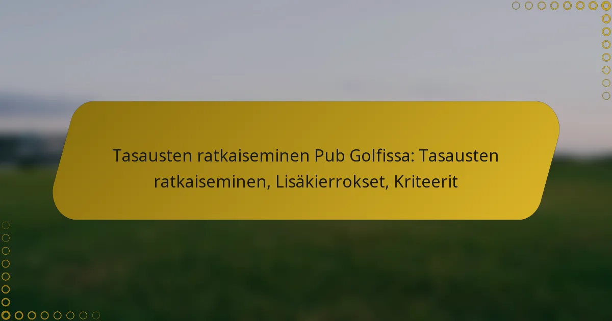 Tasapainojen ratkaisemiseksi pub golfissa voidaan käyttää useita kriteerejä pelaajien suorituksen arvioimiseksi. Näitä kriteerejä ovat pelattujen reikien määrä, otettujen lyöntien tarkkuus, rangaistuspisteet sääntörikkomuksista, pisteiden johdonmukaisuus kierroksilla ja pelaajien käytös. Näiden näkökohtien arvioiminen auttaa määrittämään osalistujien yleisen taidon ja urheiluhengen.